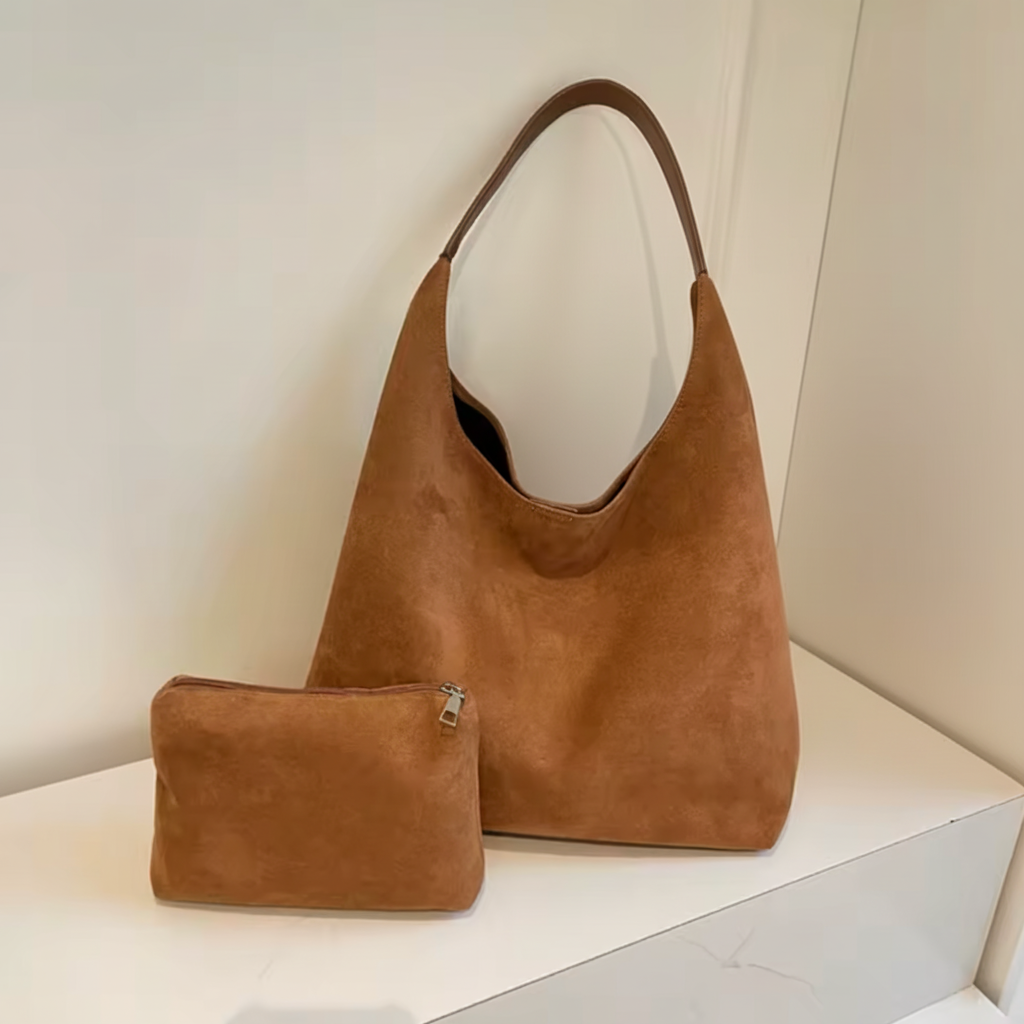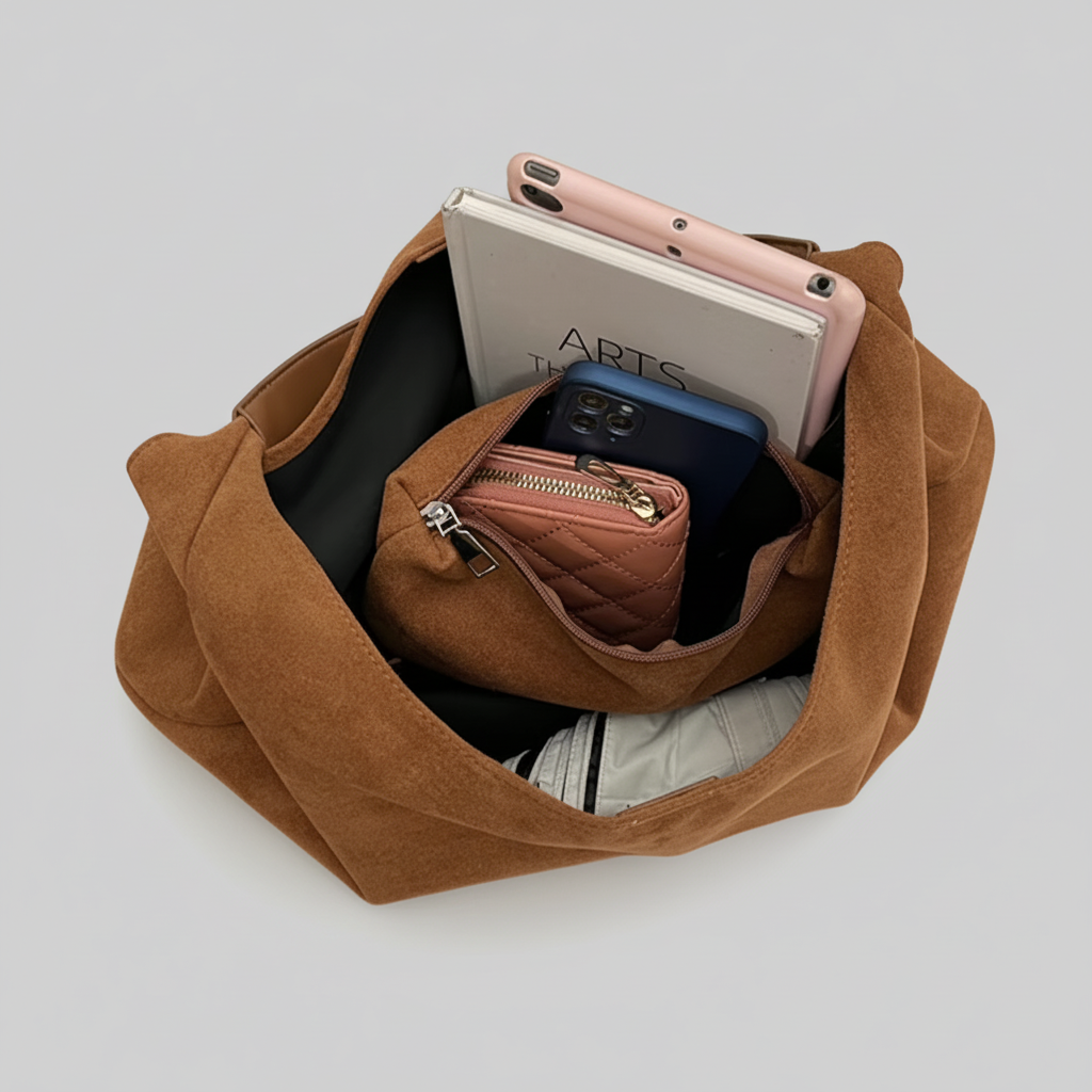 The perfect everyday bag. Spacious, lightweight, and crafted from soft vegan suede, it comfortably fits a 13" MacBook along with all your daily essentials.